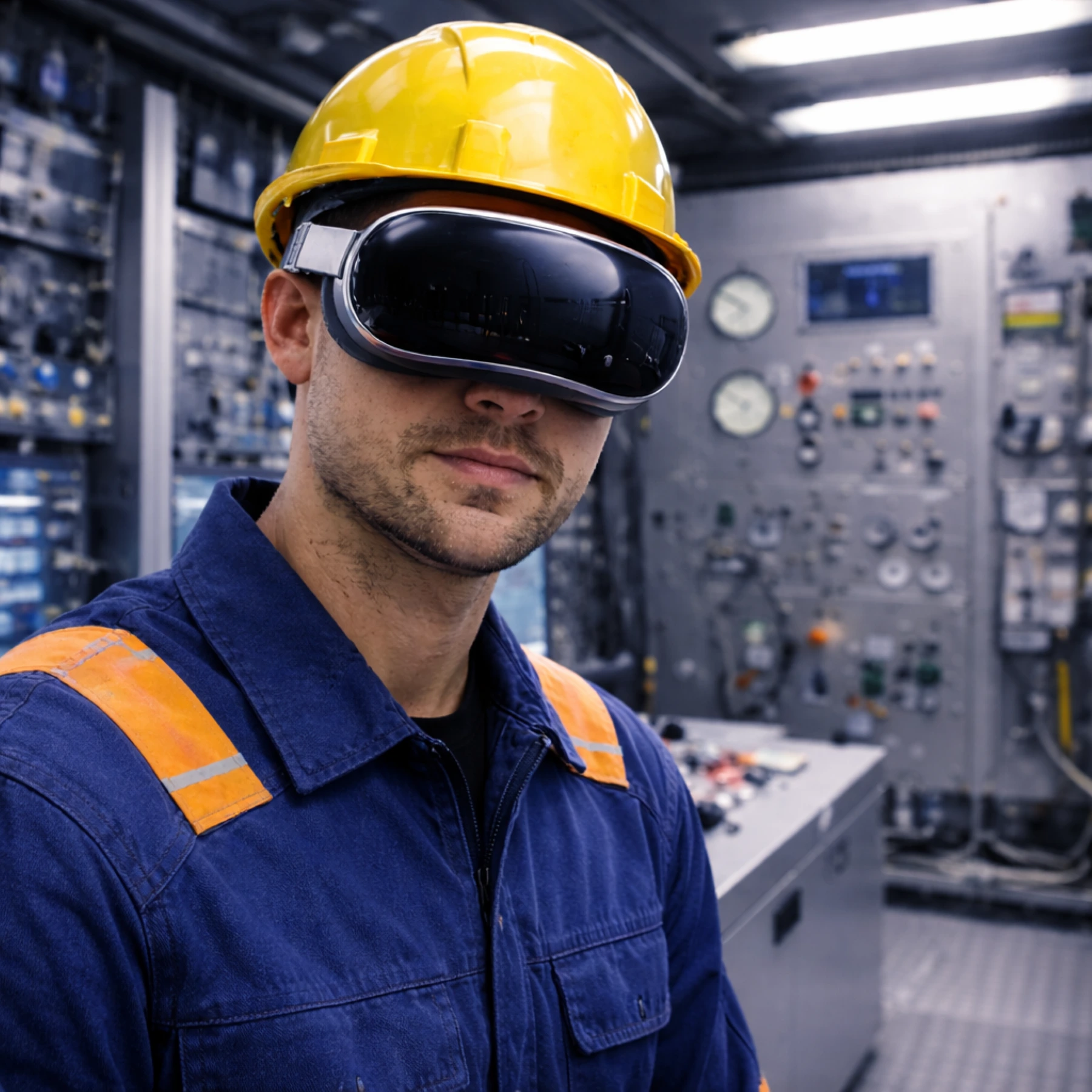 The employee views their physical environment through the headset and receives visual instructions directly within their field of view. Components are pointed out, points of attention are marked, and relevant information is made visible at the exact location where the work is being performed. The employee works fully hands-free and remains focused on the task.